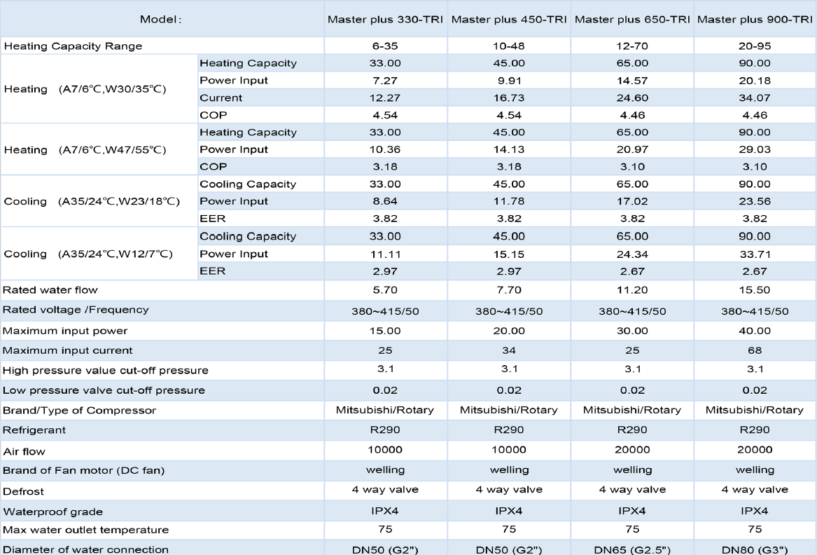 A: R290 is an eco-friendly refrigerant with very low global warming potential (GWP). A heat pump using R290 offers strong performance, high efficiency and supports sustainable operation.